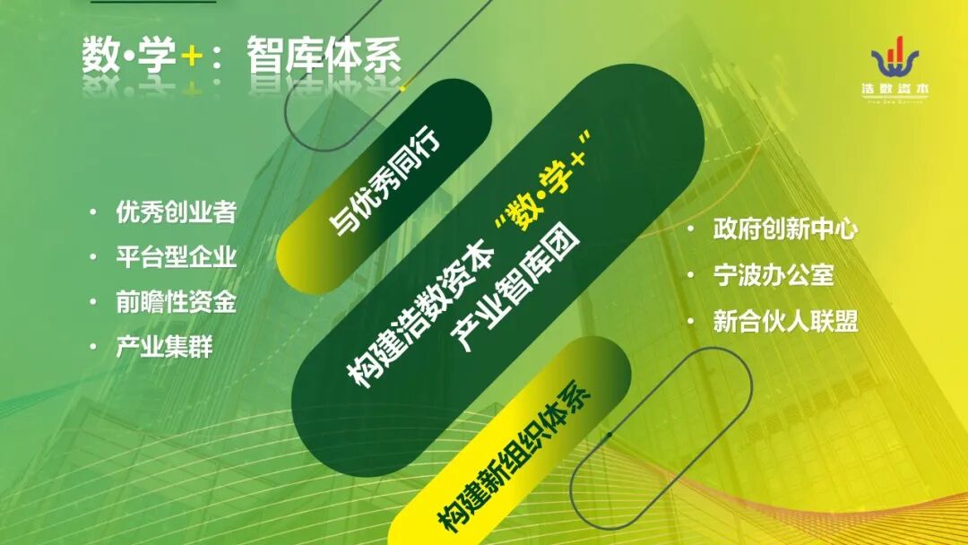 数·学+是指浩数资本与学术专家教授1+1,形成产业plus+的合力效应,全面提升浩数资本产业验证能力。